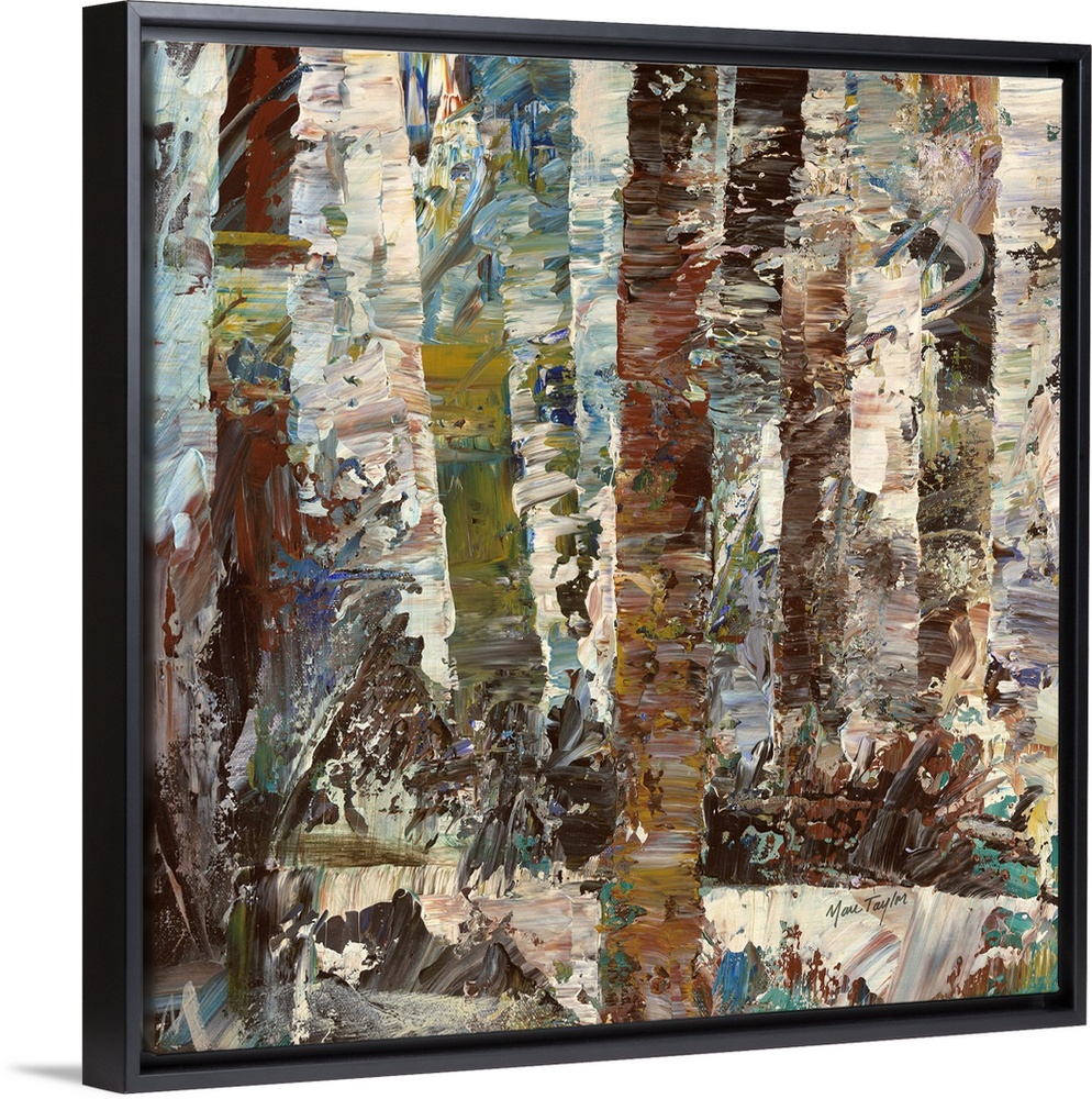 <p>Contemporary abstract painting of a mash-up of colors and textures resembling a dense forest.</p>