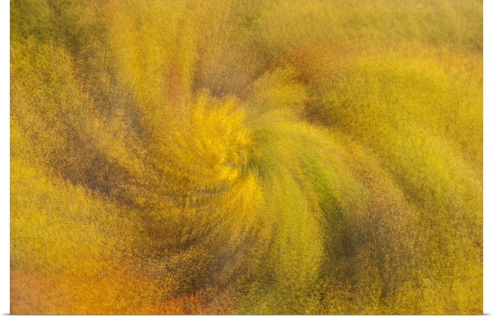 <p>Abstract zoom effect of a swirl of golden, fall foliage in Great Smokies National Park, Tennessee, North Carolina, United States of America</p>