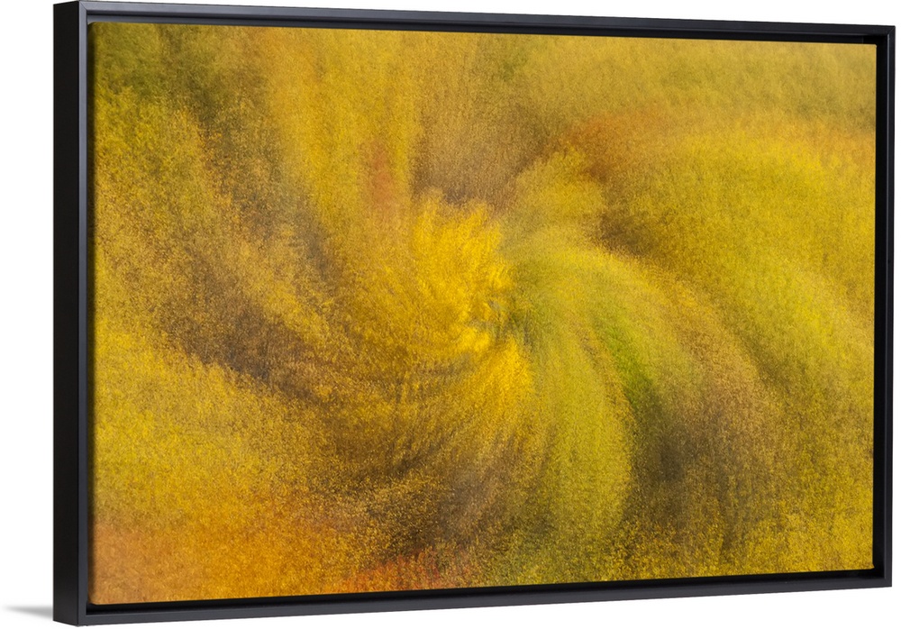 <p>Abstract zoom effect of a swirl of golden, fall foliage in Great Smokies National Park, Tennessee, North Carolina, United States of America</p>