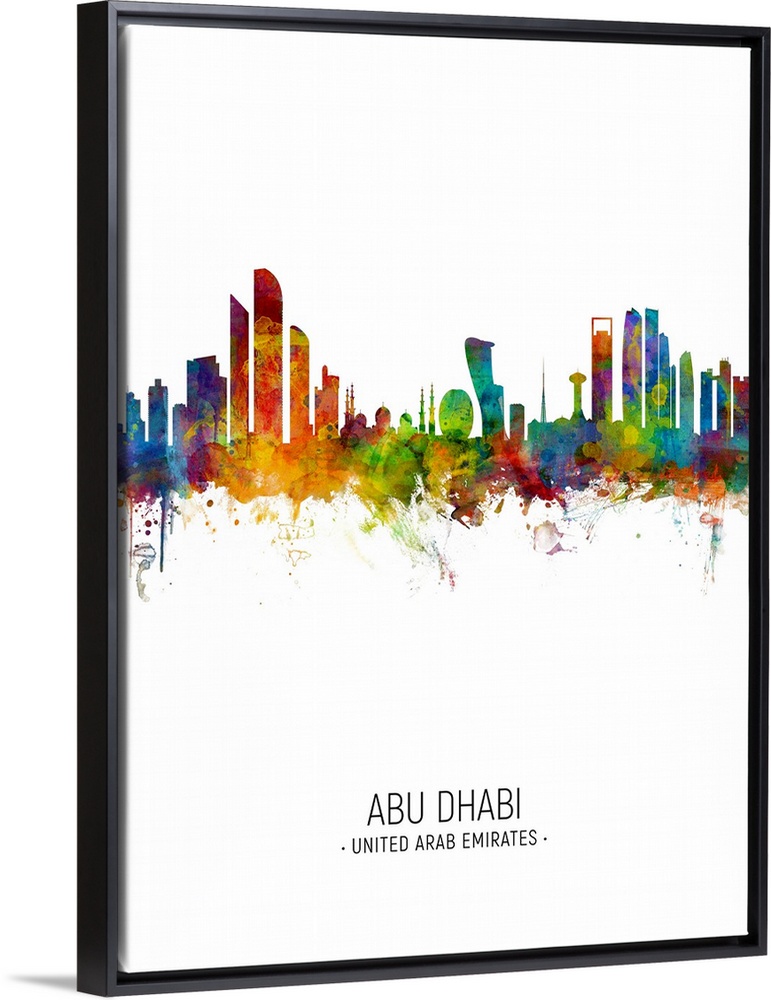 <p>Watercolor art print of the skyline of Abu Dhabi, United Arab Emirates</p>