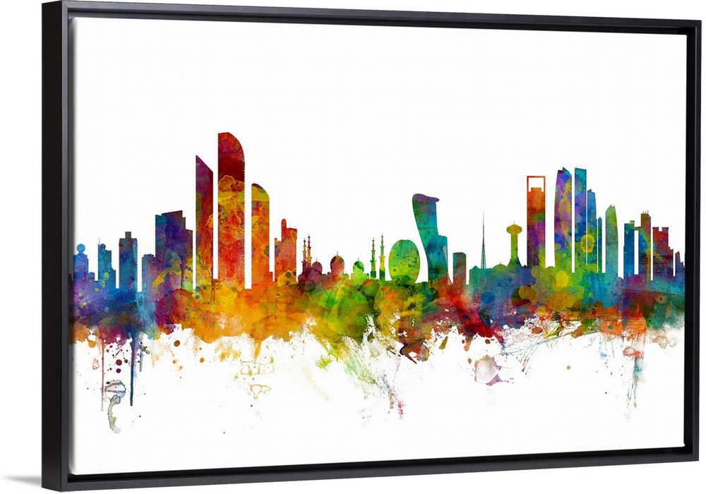 <p>Watercolor art print of the skyline of Abu Dhabi, United Arab Emirates.</p>