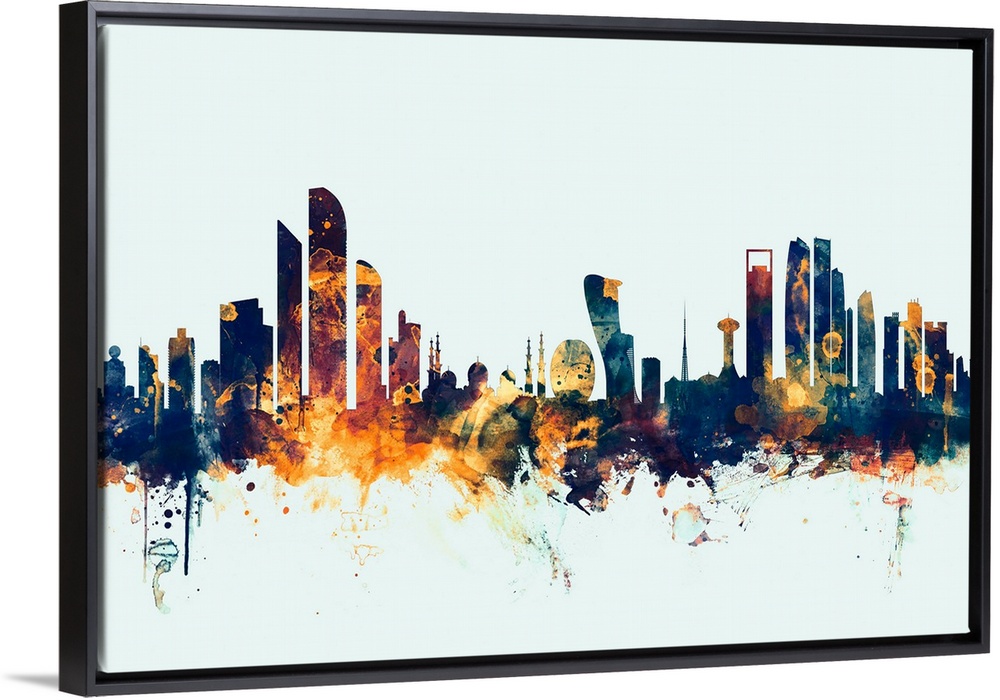 <p>Watercolor art print of the skyline of Abu Dhabi, United Arab Emirates.</p>