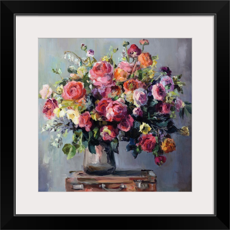 <p>Contemporary still-life painting of a bouquet of colorful flowers.</p>