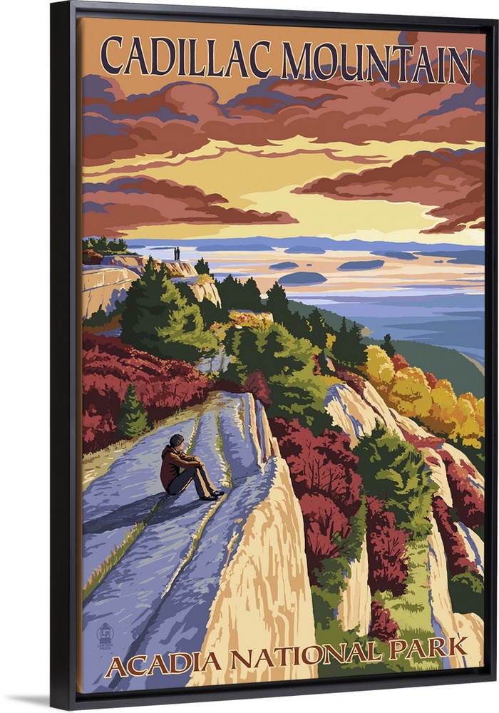 Art Landscapes Cliff Mountains Sunset Lantern Press Maine Acadia National Park Hiking