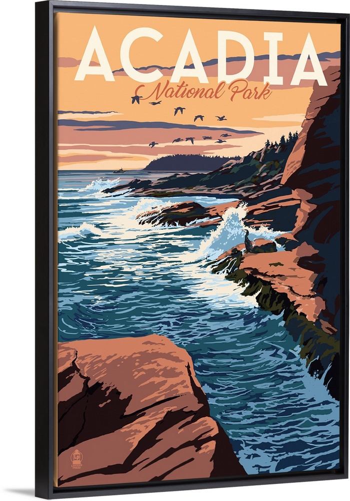 Art Landscapes Beaches Rocky Beaches Lantern Press United States Maine Acadia National Park
