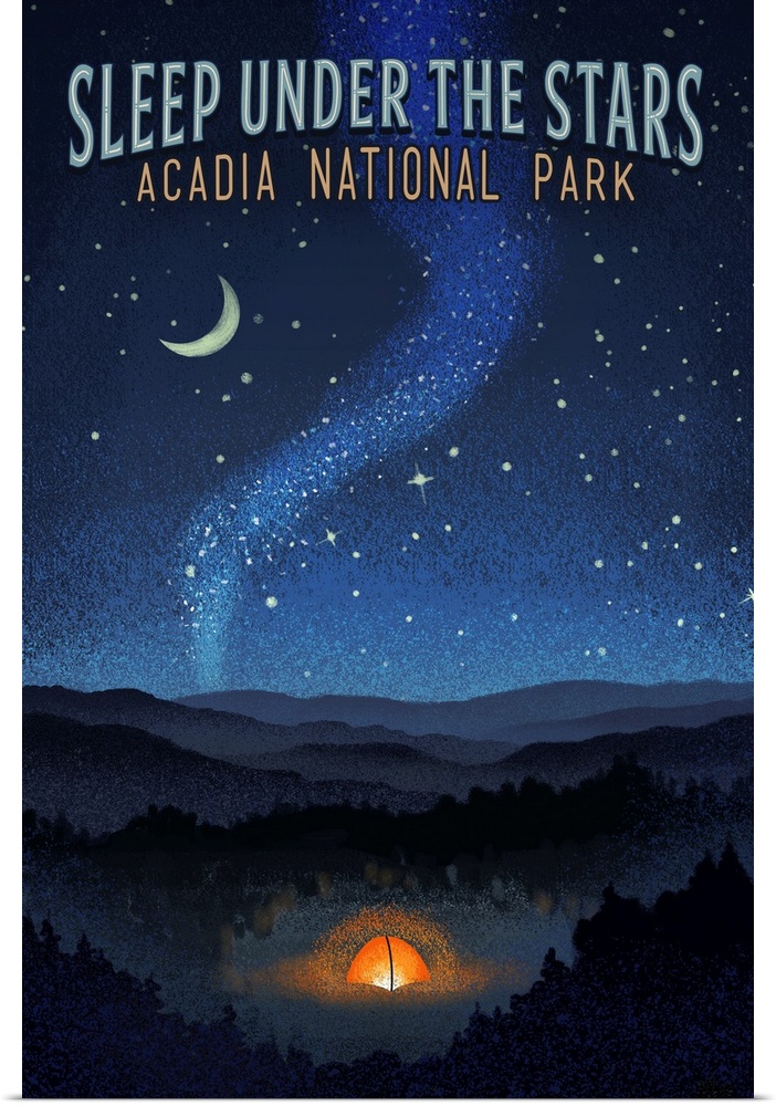 Art Camping Skyscapes Night Sky Lantern Press United States Maine Acadia National Park