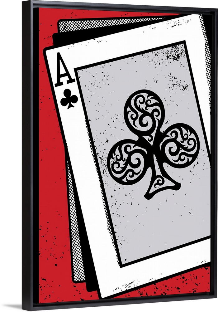 <p>Digital illustration of an Ace of clubs on a red background.</p>