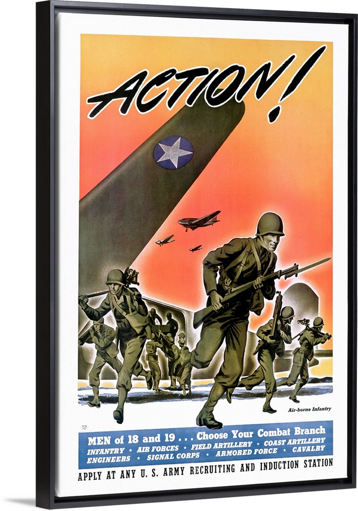 <p>ca. 1944 --- Action! Army Recruitment Poster --- Image by .. K.J. Historical/CORBIS</p>