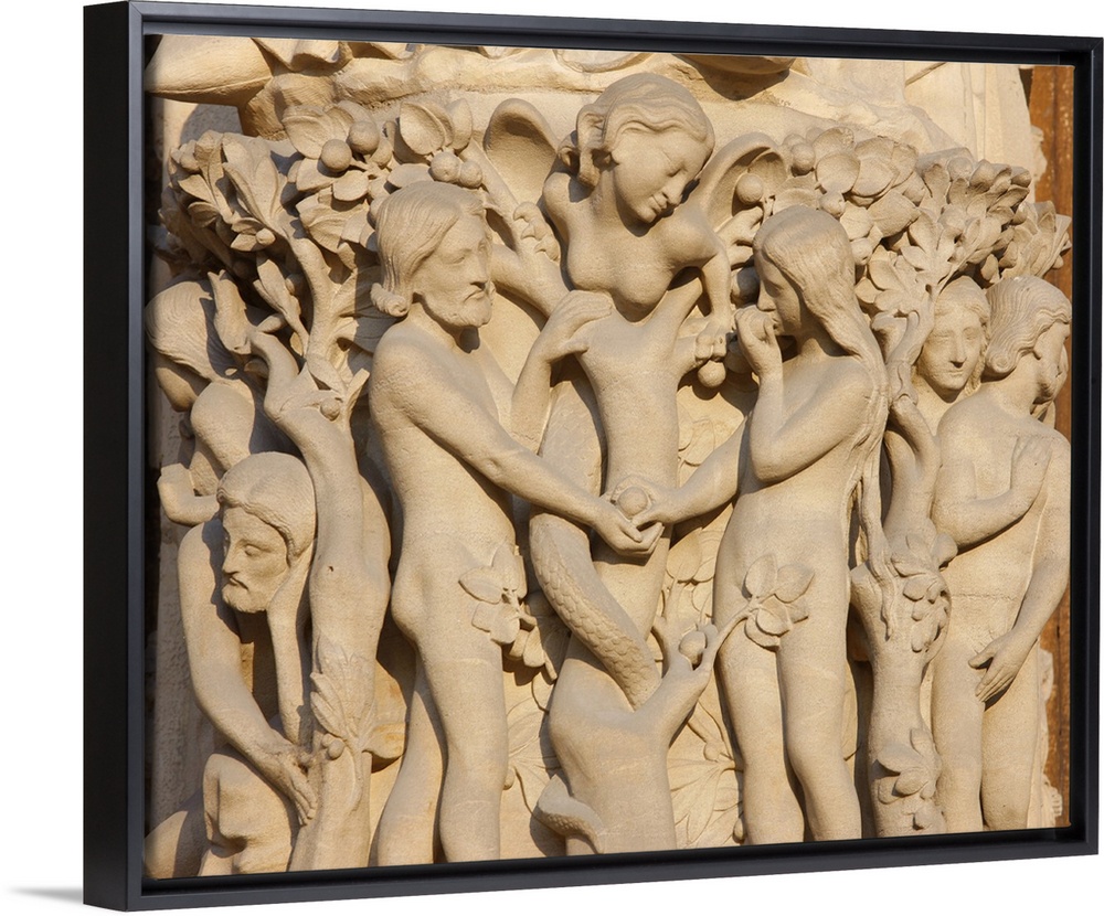 <p>Adam and Eve, Virgin's Gate, west front, Notre Dame Cathedral, UNESCO World Heritage Site, Paris, France, Europe.</p>