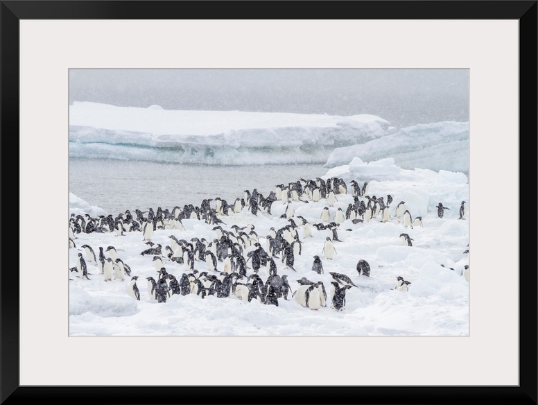<p>Adelie penguins (Pygoscelis adeliae), in snow storm at breeding colony at Brown Bluff, Antarctic Peninsula, Antarctica, Polar Regions</p>