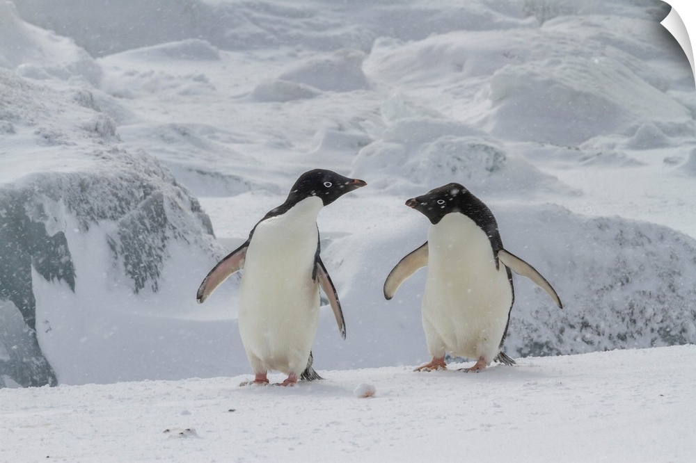 <p>Adelie penguins (Pygoscelis adeliae), in snow storm at breeding colony at Brown Bluff, Antarctic Peninsula, Antarctica, Polar Regions</p>