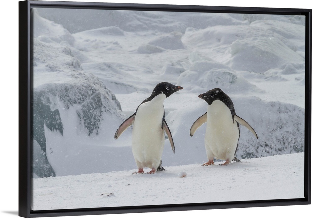 <p>Adelie penguins (Pygoscelis adeliae), in snow storm at breeding colony at Brown Bluff, Antarctic Peninsula, Antarctica, Polar Regions</p>