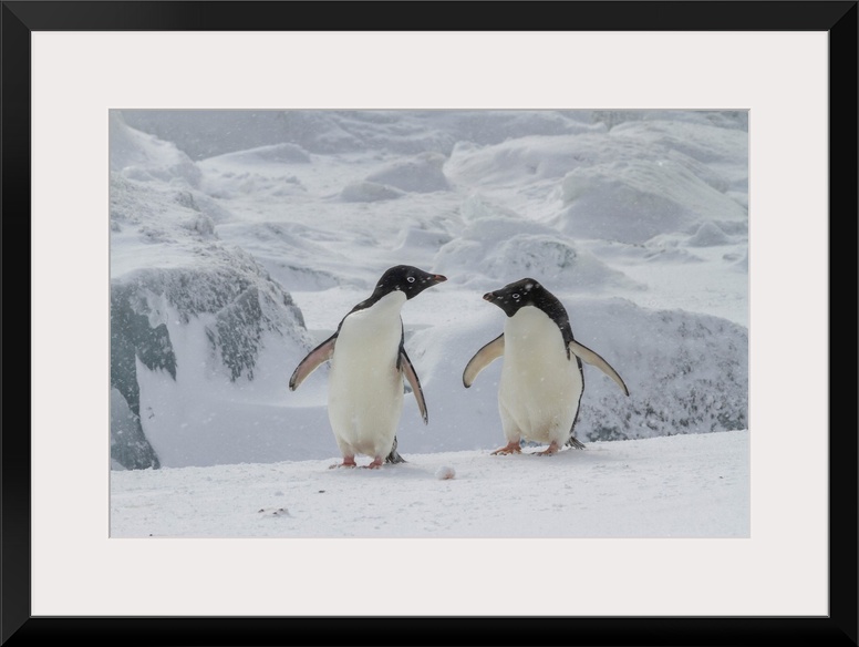 <p>Adelie penguins (Pygoscelis adeliae), in snow storm at breeding colony at Brown Bluff, Antarctic Peninsula, Antarctica, Polar Regions</p>