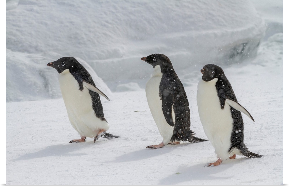 <p>Adelie penguins (Pygoscelis adeliae), in snow storm at breeding colony at Brown Bluff, Antarctic Peninsula, Antarctica, Polar Regions</p>