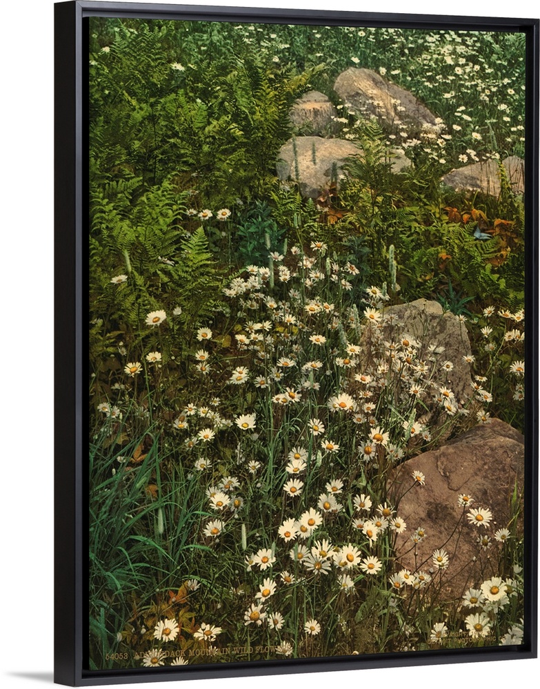 <p>Hand colored photograph of Adirondack Mountain and wildflowers.</p>