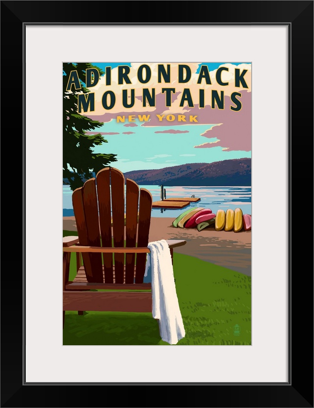 <p>Adirondack Mountains, New York, Adirondack Chair and Lake</p>