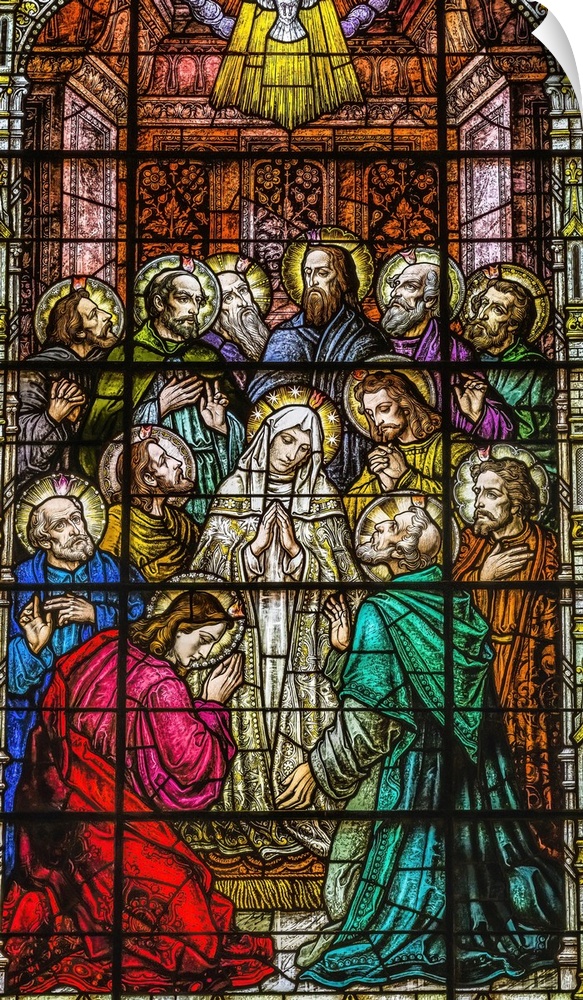 <p>Adoration of Virgin Mary Disciples stained glass Gesu Church, Miami, Florida. Built 1920's. Glass by Franz Mayer.</p>