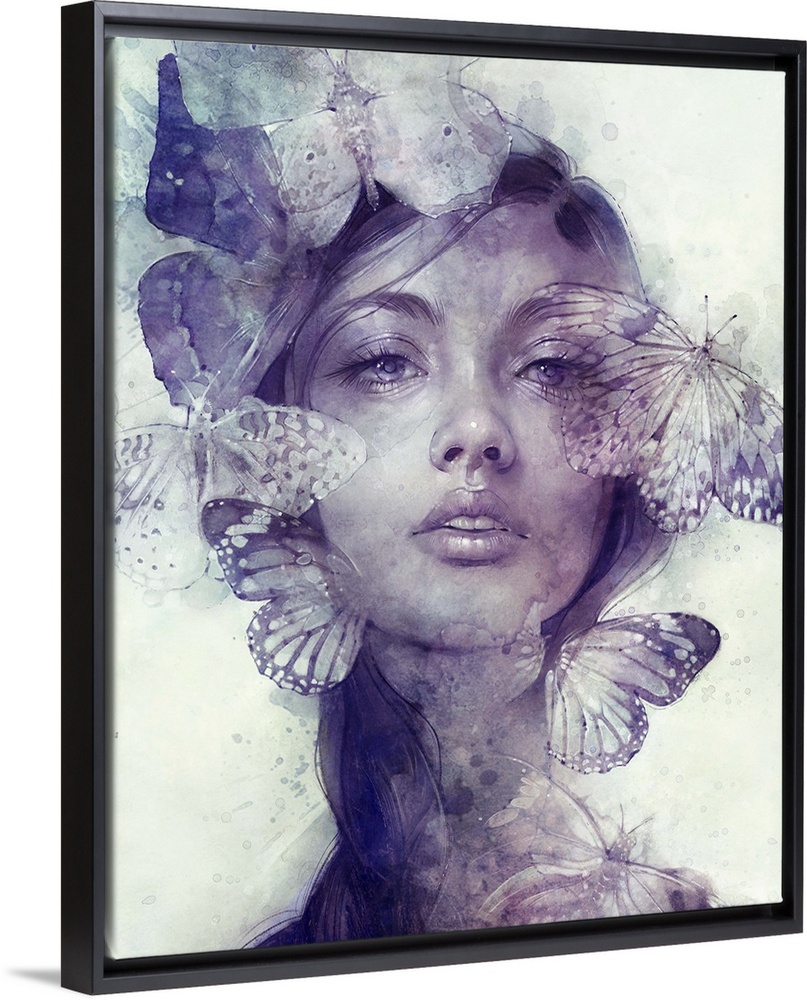 Art Contemporary Art Wildlife Anna Dittman Fantasy People Painting People Portraits Purple Wall Art Watercolor Wildlife Insect and Arachnid Butterfly