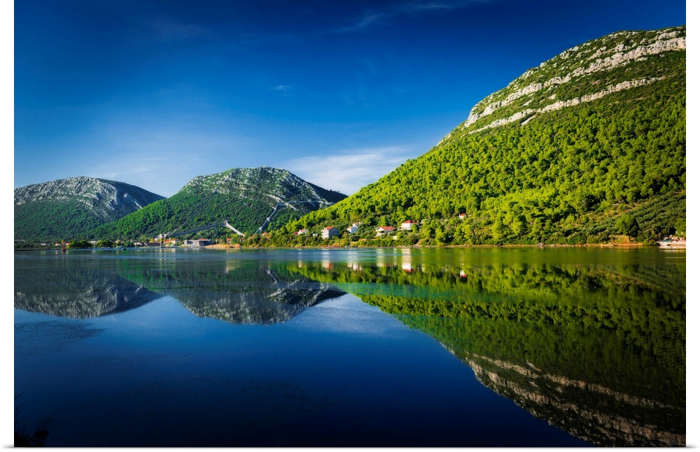 <p>Adriatic reflection and the Great Wall above the city center, Ston, Dalmatian Coast, Croatia.</p>