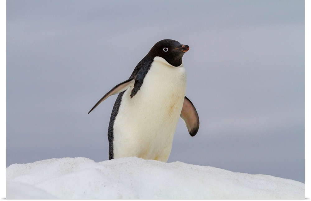 <p>Adult Adelie penguin (Pygoscelis adeliae), on ice at Booth Island, Antarctica, Polar Regions</p>