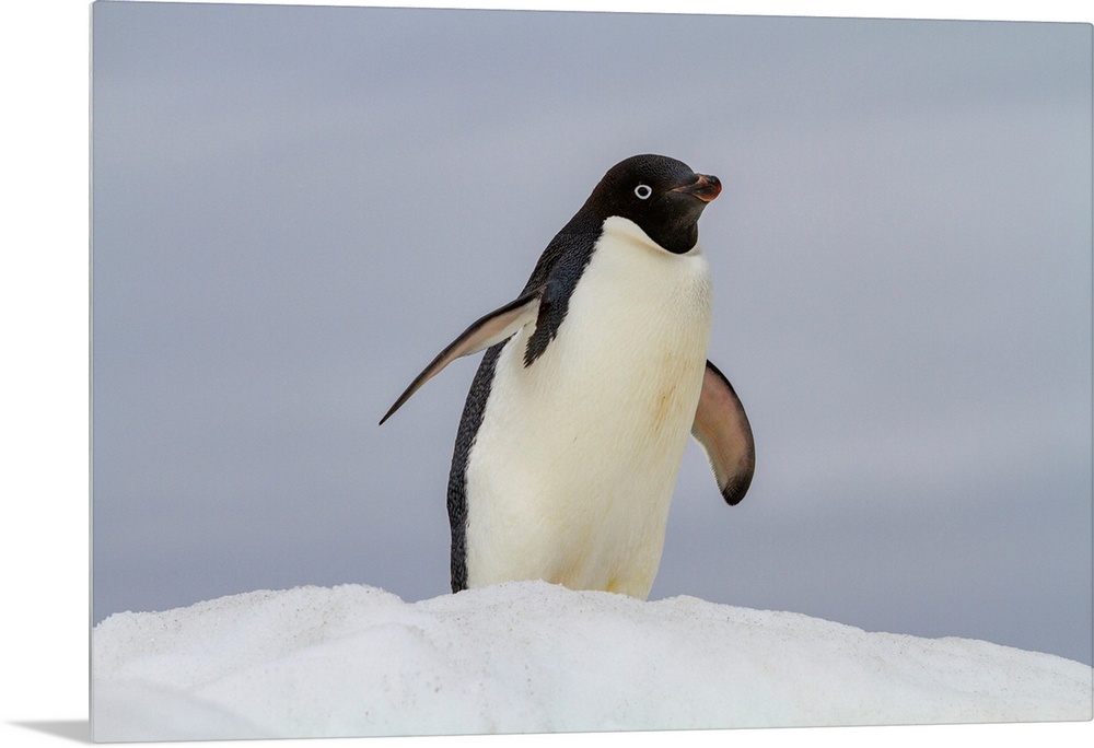 <p>Adult Adelie penguin (Pygoscelis adeliae), on ice at Booth Island, Antarctica, Polar Regions</p>