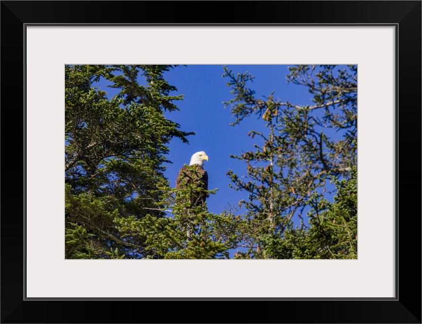<p>Adult bald eagle (Haliaeetus leucocephalus) perched in Sitka spruce tree, Southeast Alaska, United States of America</p>