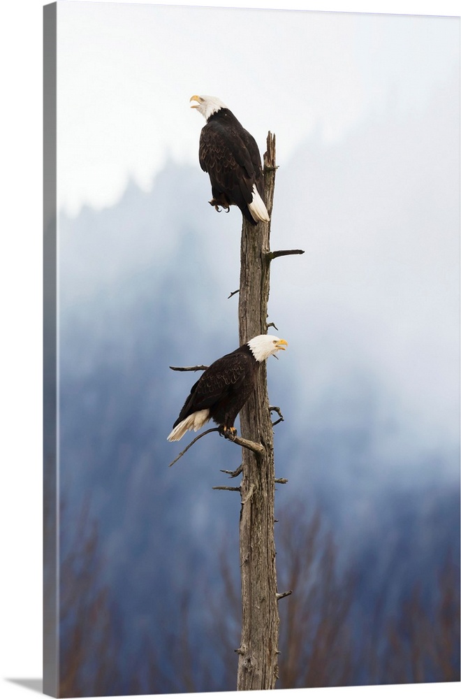 <p>Adult Bald Eagles Perched On Top Of A Dead Tree, Portage Valley, Alaska</p>
