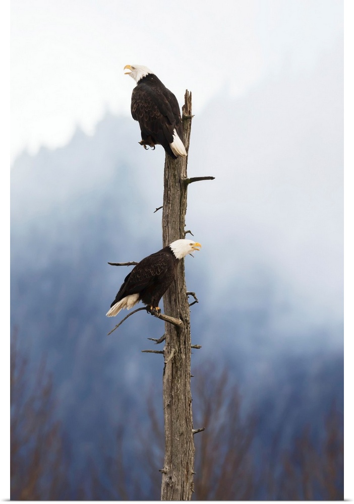<p>Adult Bald Eagles Perched On Top Of A Dead Tree, Portage Valley, Alaska</p>