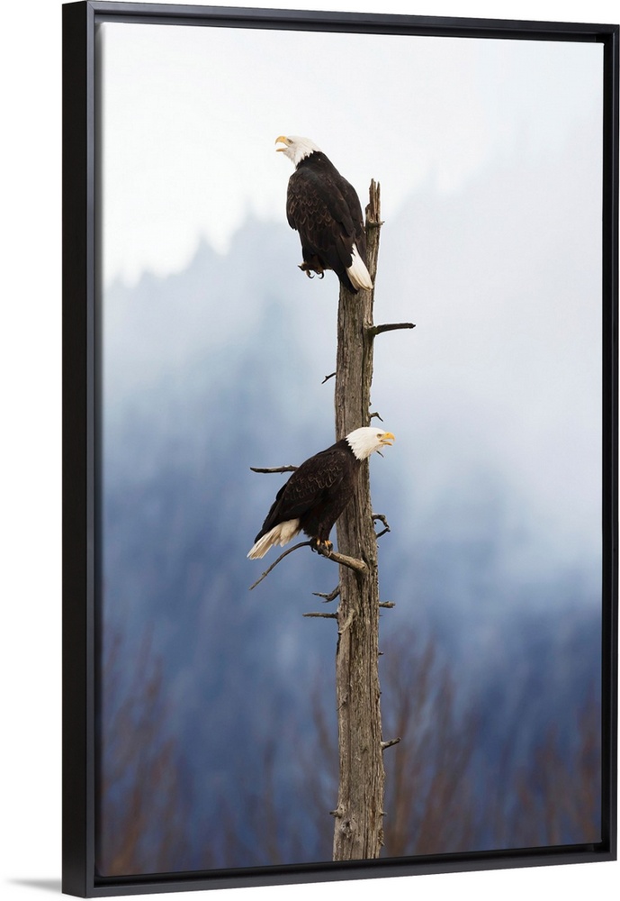 <p>Adult Bald Eagles Perched On Top Of A Dead Tree, Portage Valley, Alaska</p>