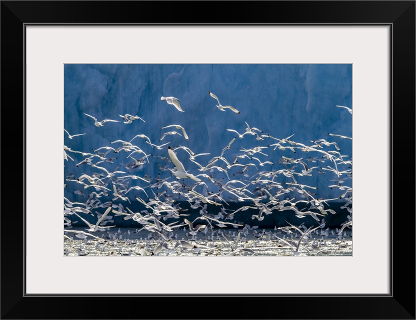 <p>Adult black-legged kittiwakes (Rissa tridactyla) feeding at the base of a glacier in the Svalbard Archipelago, Norway, Arctic, Europe</p>