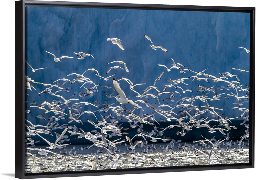 <p>Adult black-legged kittiwakes (Rissa tridactyla) feeding at the base of a glacier in the Svalbard Archipelago, Norway, Arctic, Europe</p>