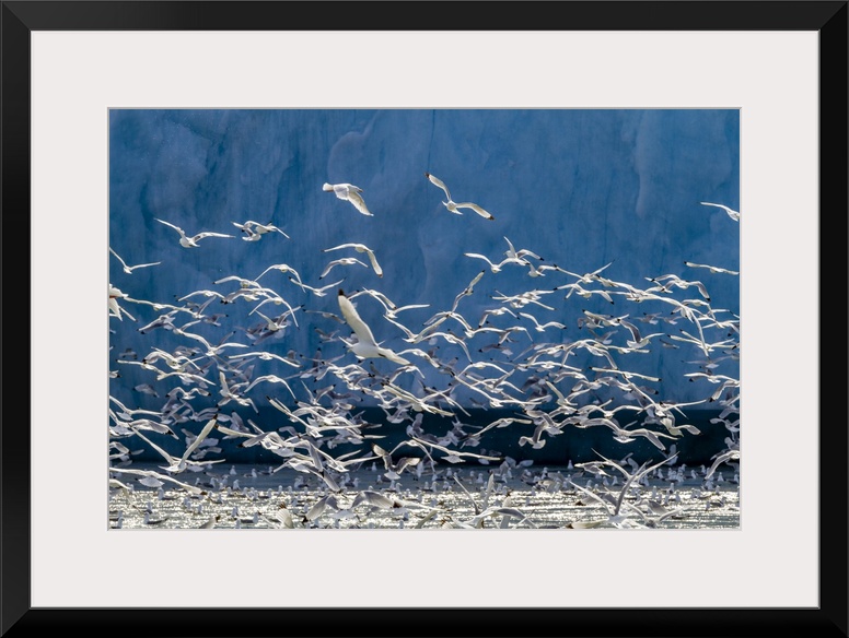 <p>Adult black-legged kittiwakes (Rissa tridactyla) feeding at the base of a glacier in the Svalbard Archipelago, Norway, Arctic, Europe</p>