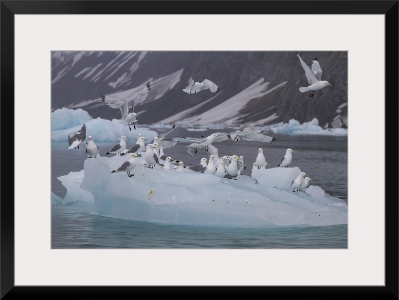 <p>Adult black-legged kittiwakes (Rissa tridactyla) resting on ice in the Svalbard Archipelago, Barents Sea, Norway, Arctic, Europe</p>