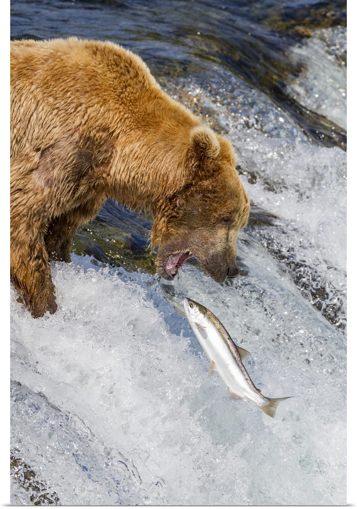 <p>Adult brown bear (Ursus arctos) foraging for salmon at the Brooks River, Katmai National Park, Alaska, United States of America</p>