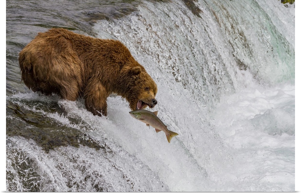<p>Adult brown bear (Ursus arctos) foraging for salmon at the Brooks River, Katmai National Park, Alaska, United States of America</p>