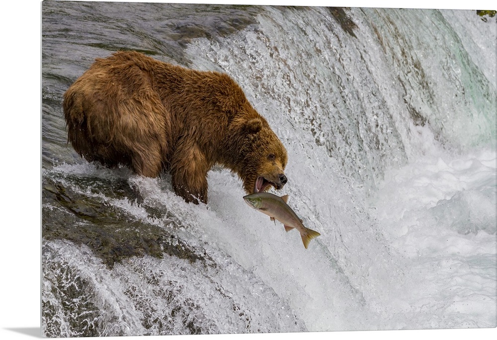 <p>Adult brown bear (Ursus arctos) foraging for salmon at the Brooks River, Katmai National Park, Alaska, United States of America</p>