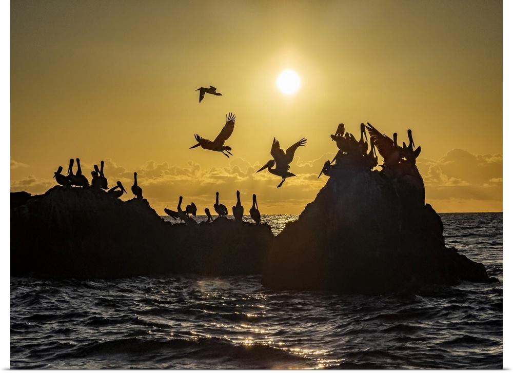 <p>Adult brown pelicans (Pelecanus occidentalis), on a small islet near Isla San Marcos, Baja California, Mexico, North America</p>