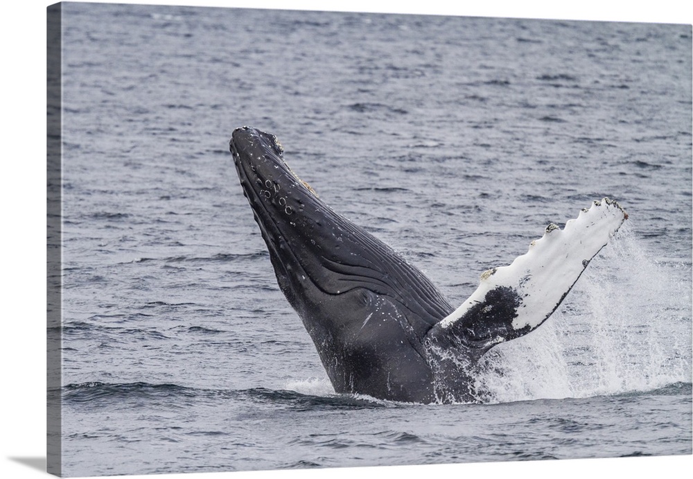 <p>Adult humpback whale (Megaptera novaeangliae) breaching along the west side of Chatham Strait in Alaska, United States of America</p>