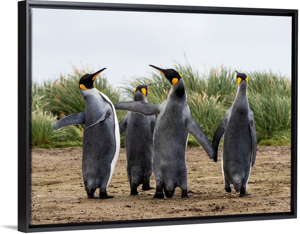 <p>Adult king penguins (Aptenodytes patagonicus), flipper slapping at Salisbury Plain, South Georgia, South Atlantic, Polar Regions</p>
