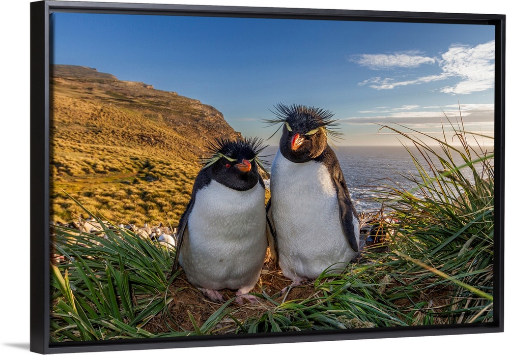<p>Adult southern rockhopper penguins (Eudyptes chrysocome), at breeding colony on West Point Island, Falklands, South America</p>