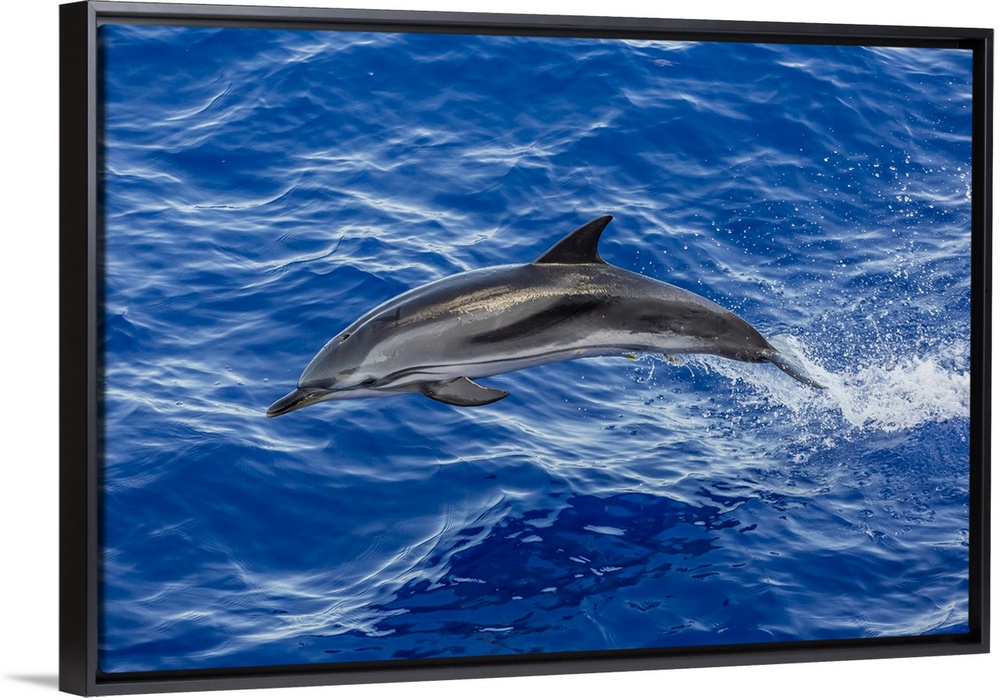 <p>Adult striped dolphin (Stenella coeruleoalba) leaping near La Gomera, Canary Islands, Spain, Atlantic, Europe</p>