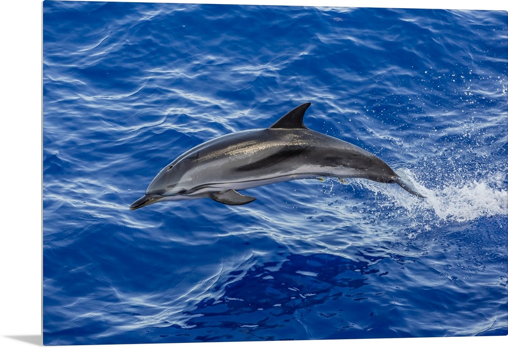 <p>Adult striped dolphin (Stenella coeruleoalba) leaping near La Gomera, Canary Islands, Spain, Atlantic, Europe</p>