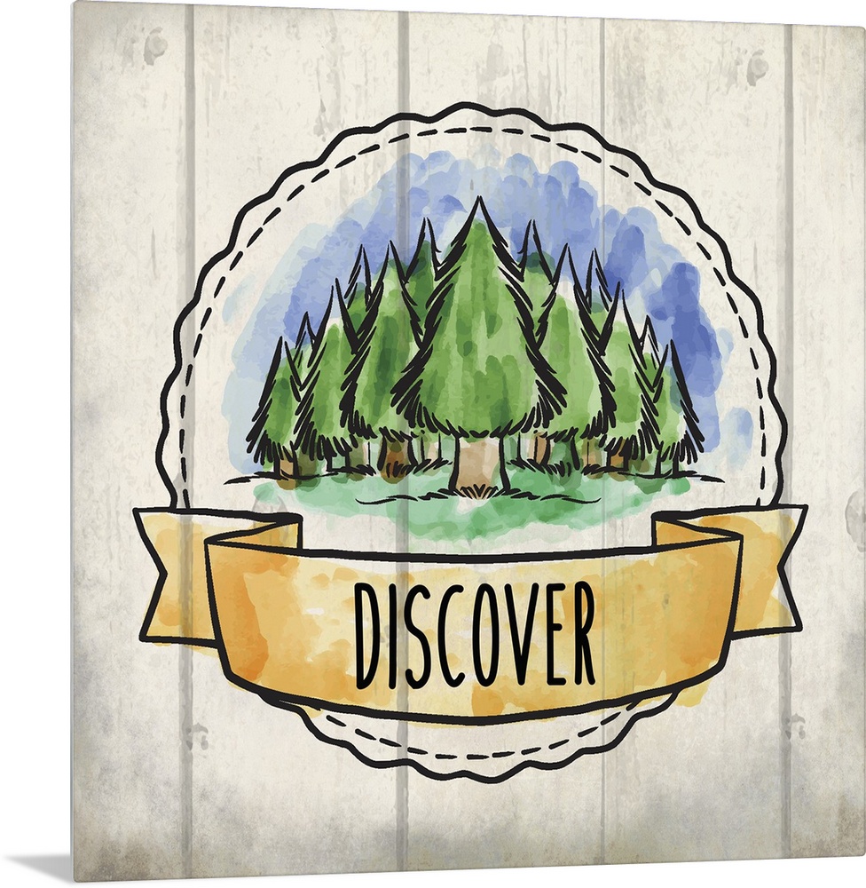 <p>Wanderlust themed design with a banner reading "Discover" and a green forest.</p>