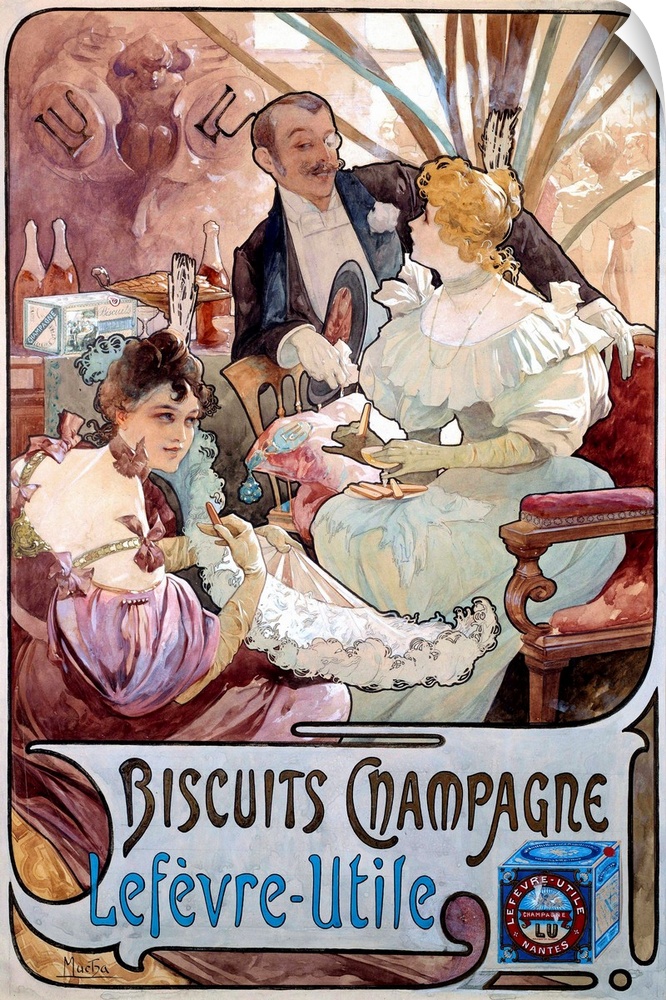 <p>Art Nouveau : advertising poster for Biscuits Champagne manufactured by Lefevre-Utile (Lefevre Utile), by Alphonse Mucha (1860-1939) 1897</p>