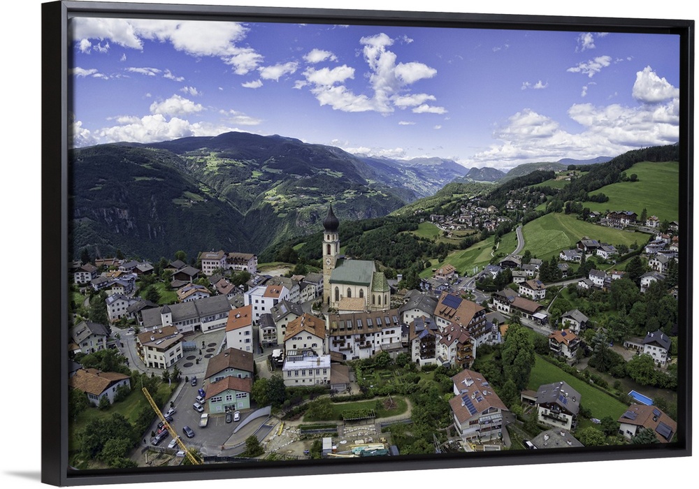 <p>Aerial capture of a church in Vols Am Schlern, Northern Italy.</p>