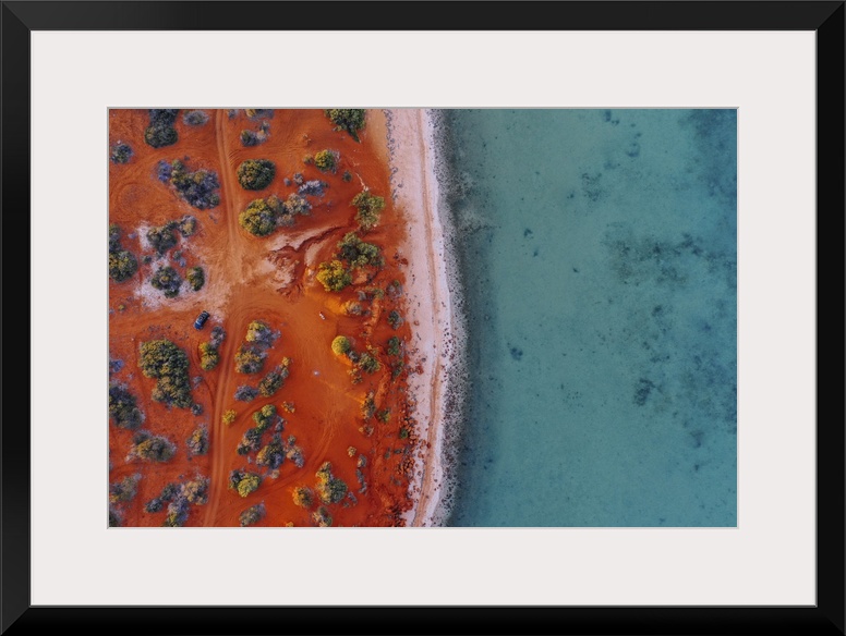 <p>Aerial Image Of Red Western Australian Mainland Contrasiting With Turquoise Water</p>