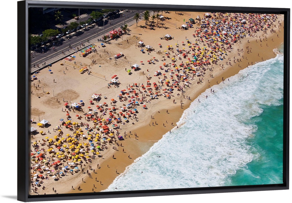 <p>Aerial of large crowd at the Copacabana Beach in Rio de Janeiro.</p>