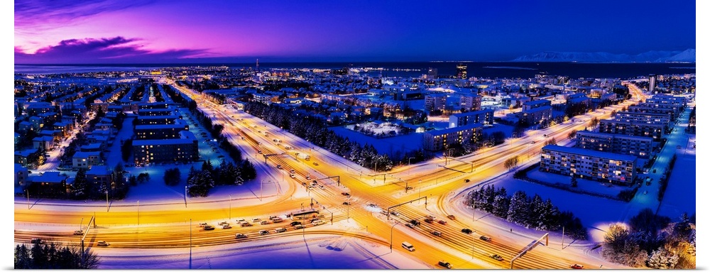 <p>Aerial of roads and neighborhoods, reykjavik, iceland.</p>