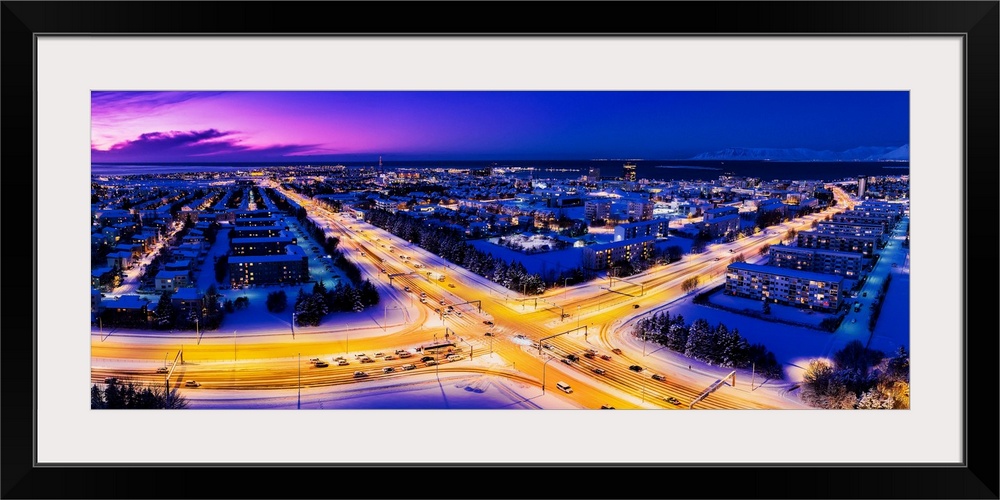 <p>Aerial of roads and neighborhoods, reykjavik, iceland.</p>