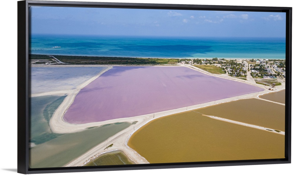 <p>Aerial of the colourful salinas of Las Coloradas, Yucatan, Mexico, North America</p>